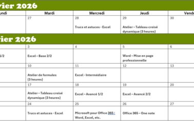 | EXCEL | Analyse de données, tableaux croisés dynamiques, graphiques et reporting avancé. |