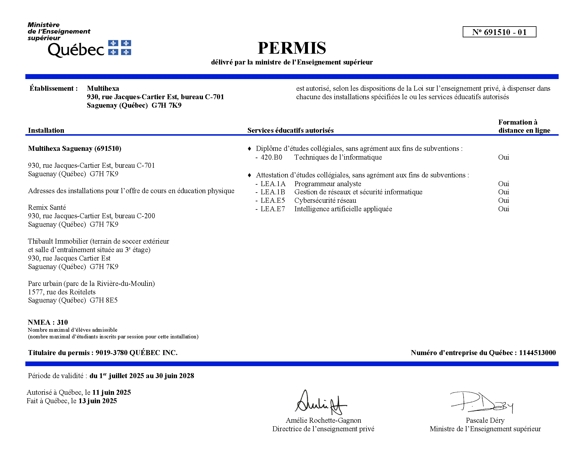 Permis du Ministère de l’Enseignement supérieur du Québec